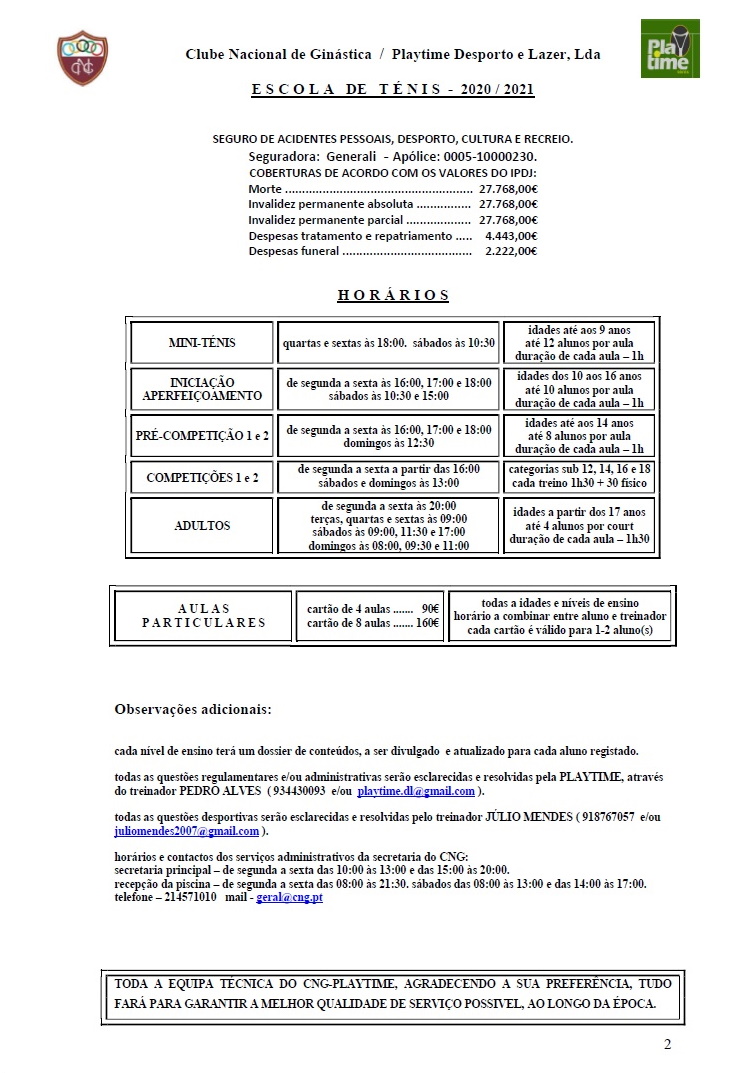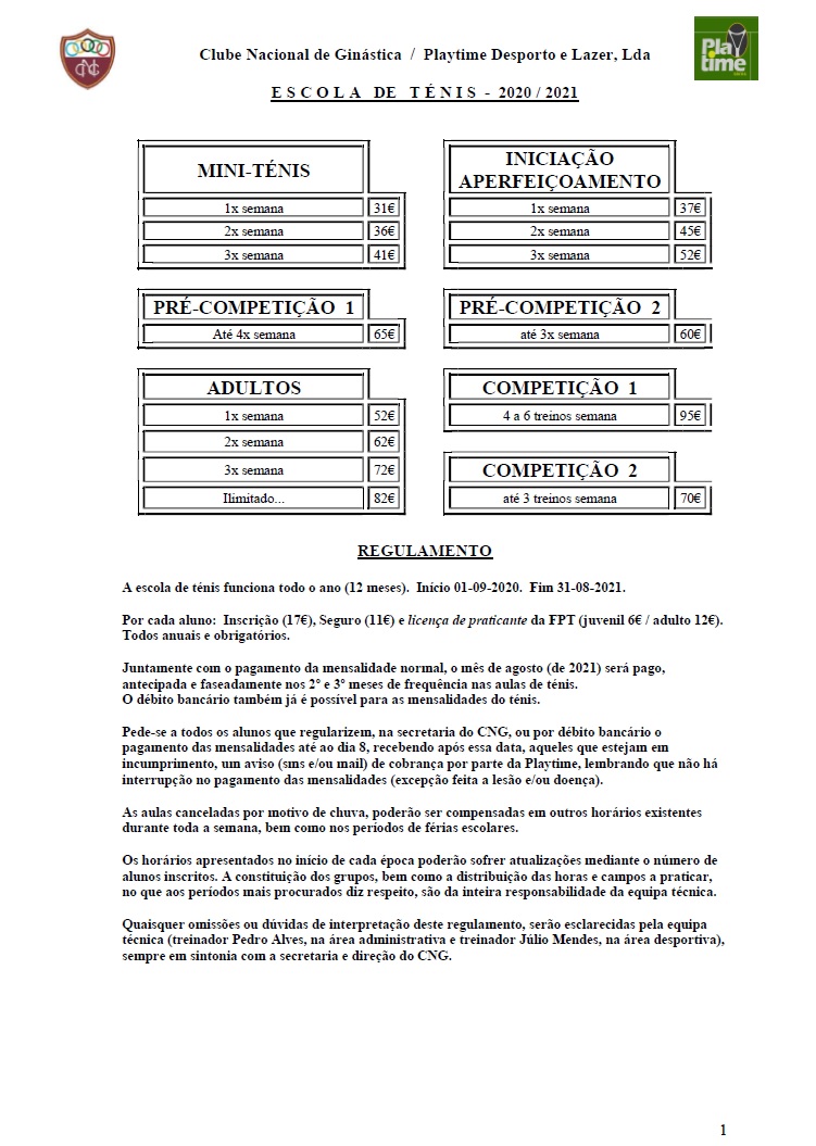 Orientações programáticas e condições internas apresentadas a cada atleta e encarregado de educação, incluindo preparação física.