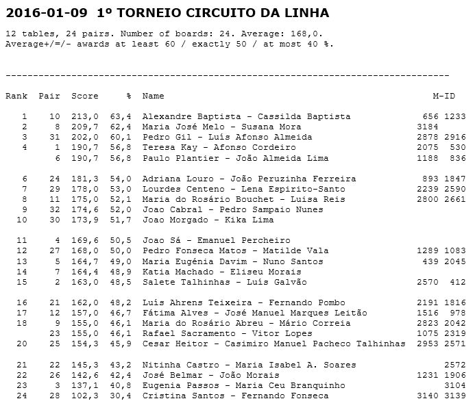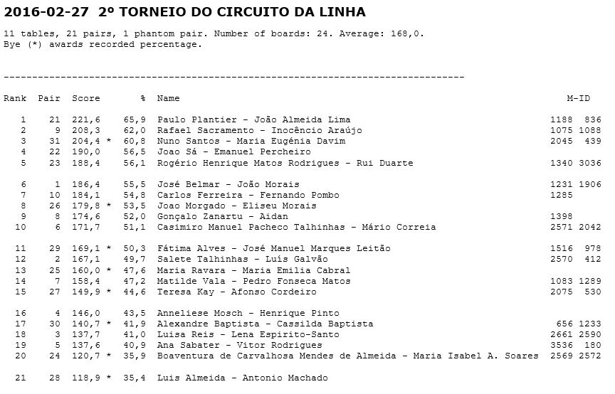 Paulo Plantier e João Almeida Lima vencem o II Torneio da Linha 2016 organizado pela secção de bridge do CNG