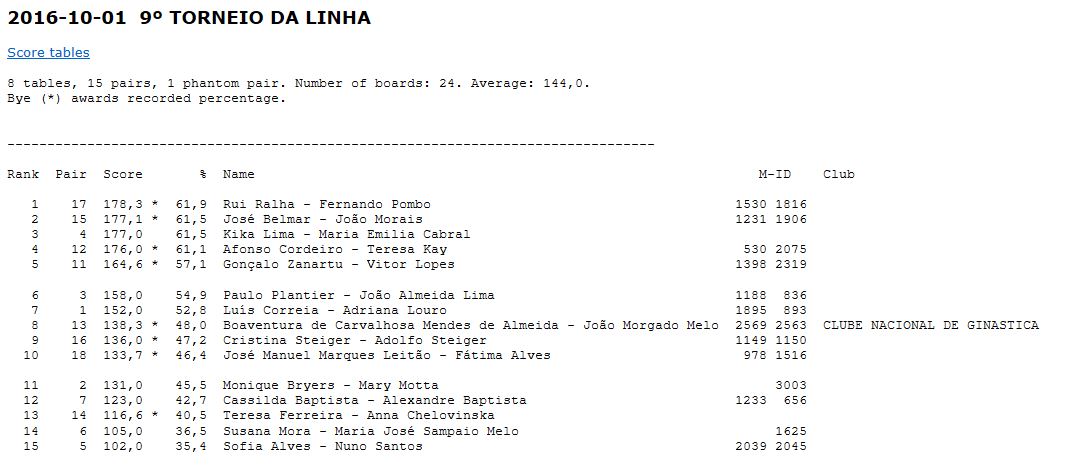 Rui Ralha e Fernando Pombo vencem o IX Torneio da Linha 2016 organizado pela secção de bridge do CNG