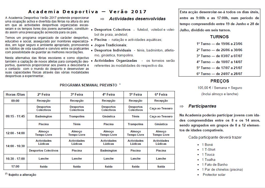 Para qualquer uma das actividades de verão, os praticantes têm de ser sócios.