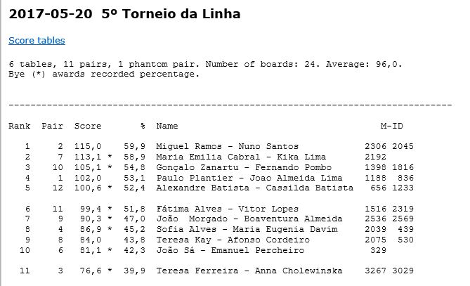 Miguel Ramos e Nuno Santos vencem o V Torneio da Linha 2017 organizado pela secção de bridge do CNG