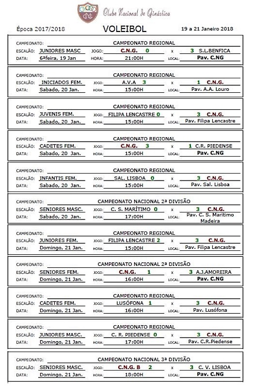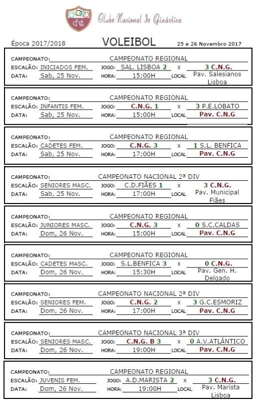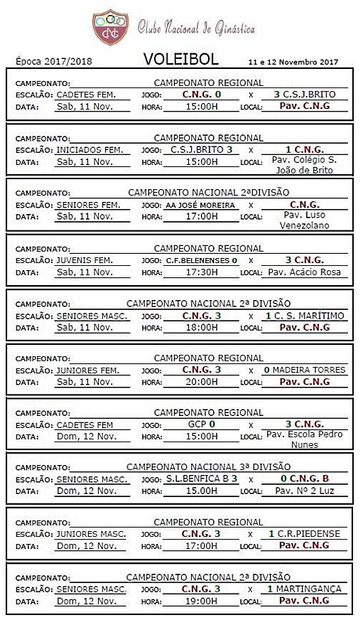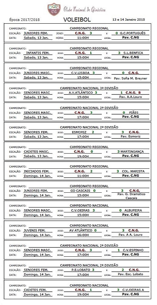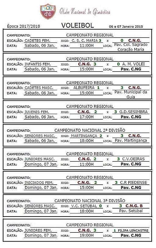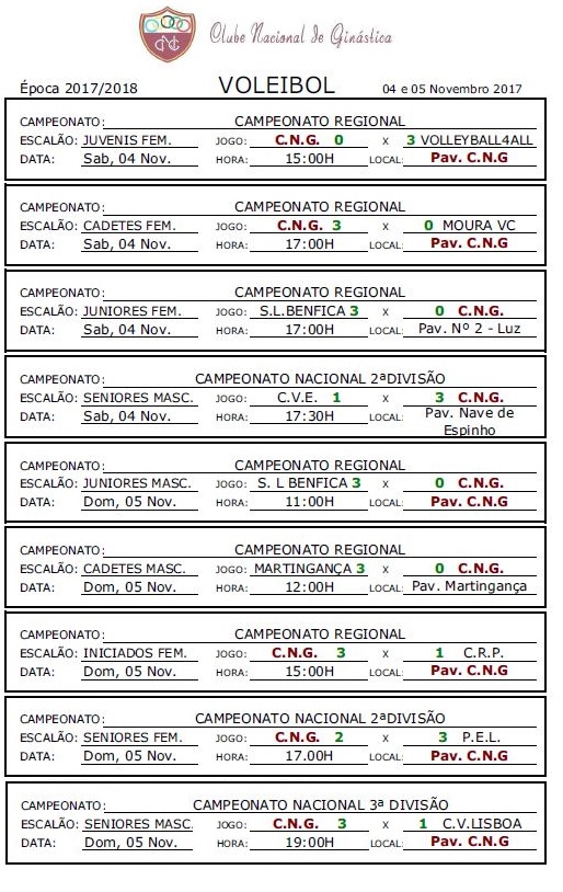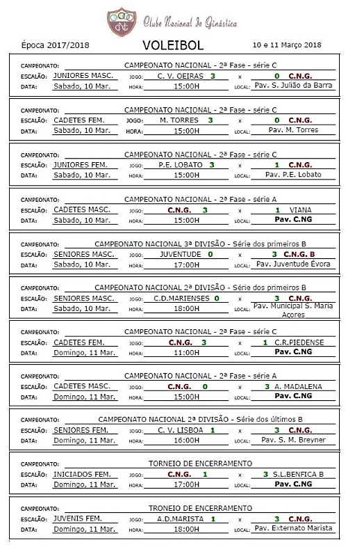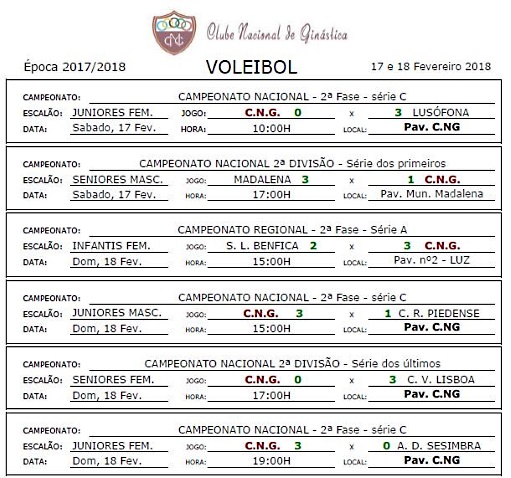 Calendários de jogos e Resultados