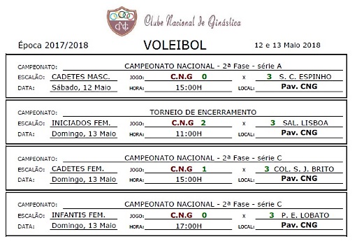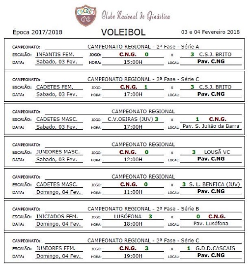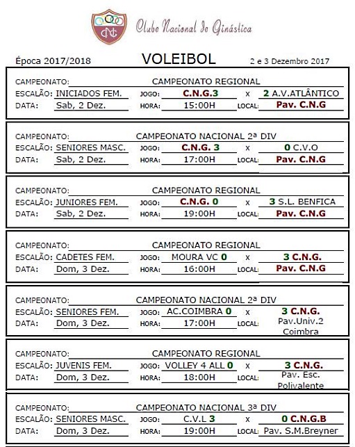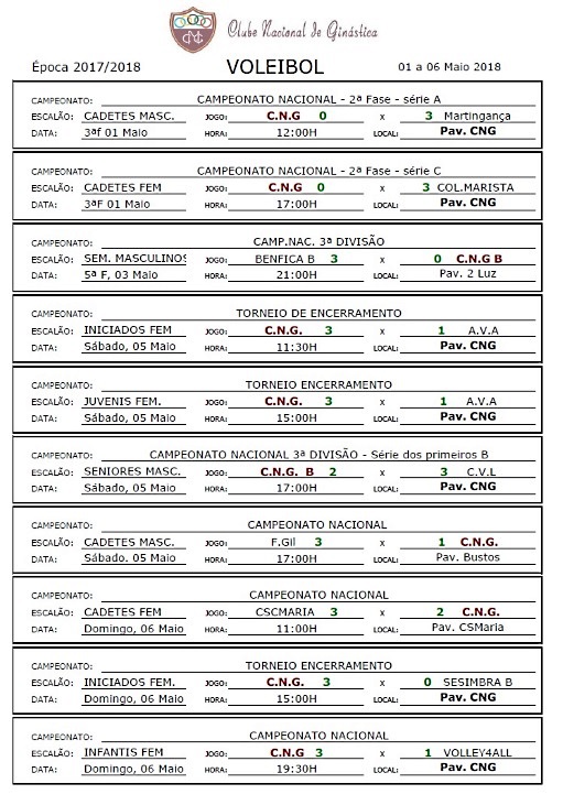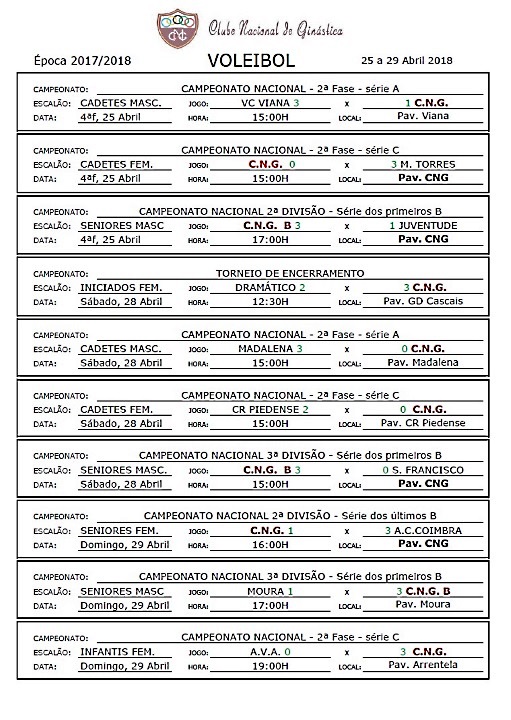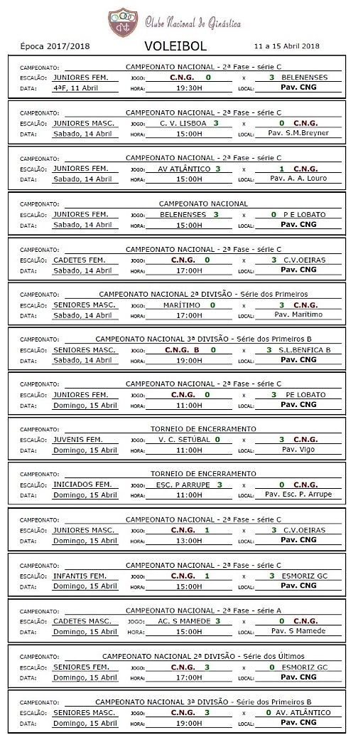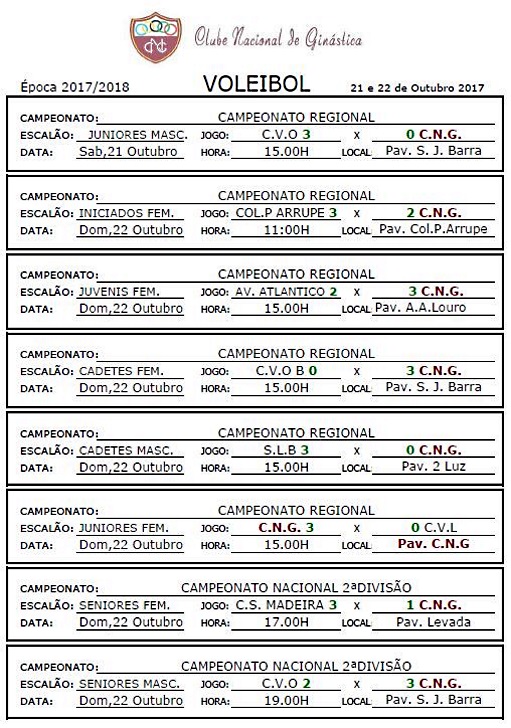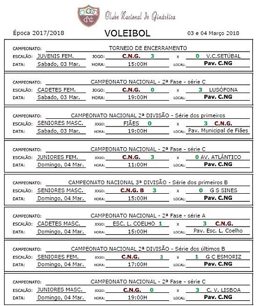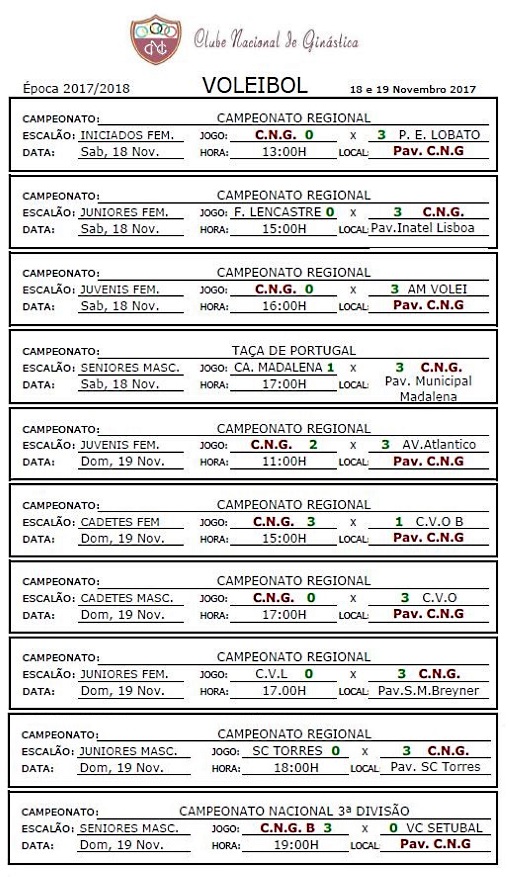 Calendários de jogos e Resultados