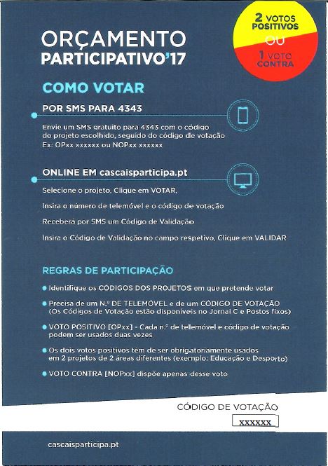 Poderá ainda obter o código de votação em cada número do Jornal OP da CMC.
