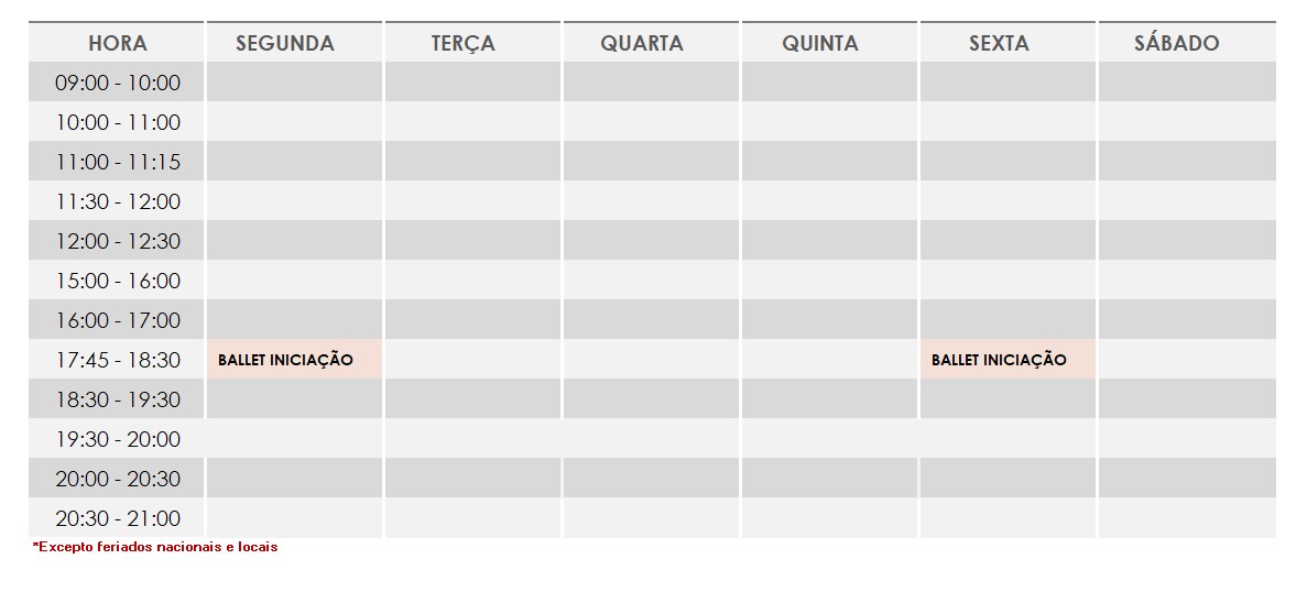 Na classe de ballet Iniciação é feita uma abordagem simples através de estímulos musicais e expressão corporal e criatividade e começa a desenvolver-se alguma técnica e expressão coreográfica.