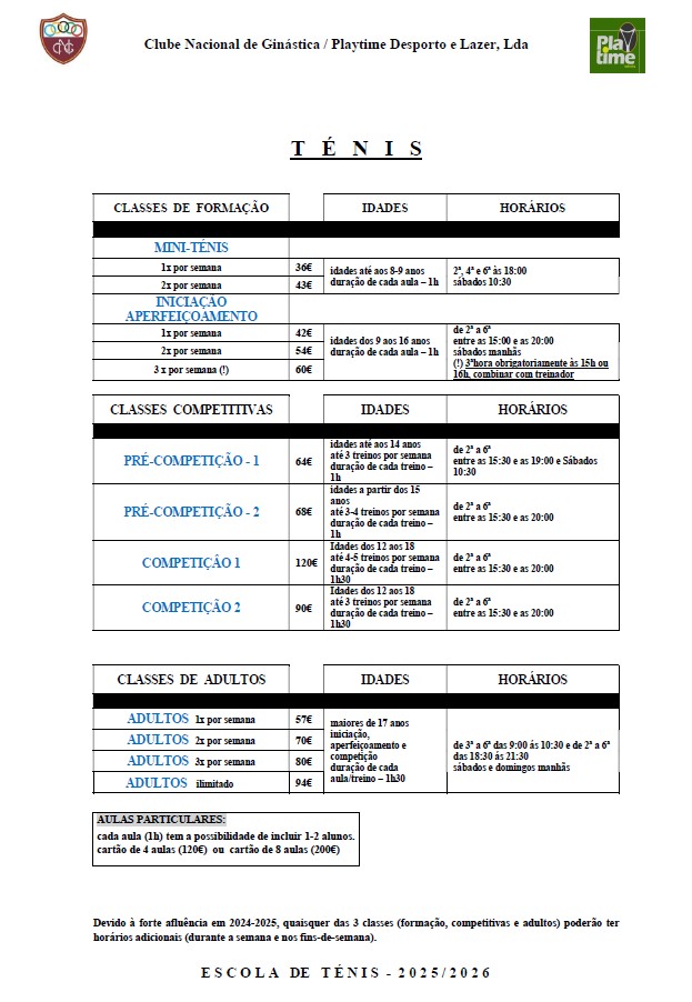 MINI TÉNIS Até aos 9 anos (aulas de 1 ou 2x/semana)